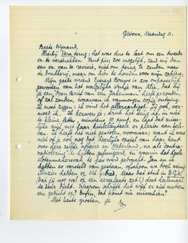 Hierbij Vera terug; het was dus te laat om een tweede ex. te verstrekken. Tant pis; zoo mogelijk, zend mij dan een ex. van de revisie, niet om terug te zenden naar de drukkerij, maar om hier te houden voor mijn cahiers.