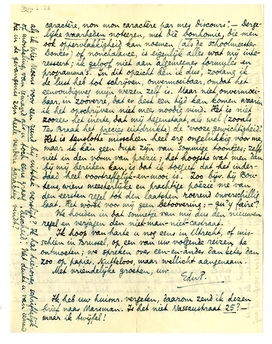 Ik hoop van harte u nog eens in Utrecht, of misschien in Brussel, op een van uw volgende reizen, te ontmoeten; we spreken over eenen-ander dan beter dan zoo op papier. Nutteloos, maar wellicht aangenaam.