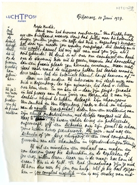 Verder geen nieuws. Bep is steeds moe, went slecht aan dit land; Alijntje is in de moeilijke leeftijd, maar maakt het verder opperbest. Ik ben - laat ons daar maar niet over praten. Misschien dat volgend jaar alles beter gaat. Ik wil nu gaan werken aan de z.g. Onzekeren - je weet wel: die verhalenreeks. Daarvoor interesseert mij die Van Haren-bloedschande-historie ook. Dus doe je best. Mijn Multatuli komt in principe dit najaar uit, maar tot dusver zag ik nog geen proeven en ik heb er nog al wat aan om te werken. Daarna moeten de proeven in revisie nogmaals doorgenomen worden, en dat kàn niet meer naar Indië! Willen jij en Freddy die revisie doen? Schrijf mij dit ook omgaand even, gelijk met het resultaat v. die Van Haren-enquête.