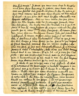 J'ai relu votre lettre; mais comment faire pour me placer ‘impersonally’ en face de cela? De tous les efforts, vous me demandez celui dont je ne suis pas capable, parce qu'il va trop contre toute ma nature. Même si votre lettre avait été de la littérature, c'est ‘personally’ que je vous aurais... admirée. And for heaven's sake ne me laissez pas croire que c'était de la littérature, que votre jeunesse et votre spontanéité, que ce courage de se risquer ne serait que la débauche (the orgy) d'une femme savante qui traduit tout son tempérament en encre, rien d'autre! Si vous étiez ainsi, cela me ferait une réelle peine