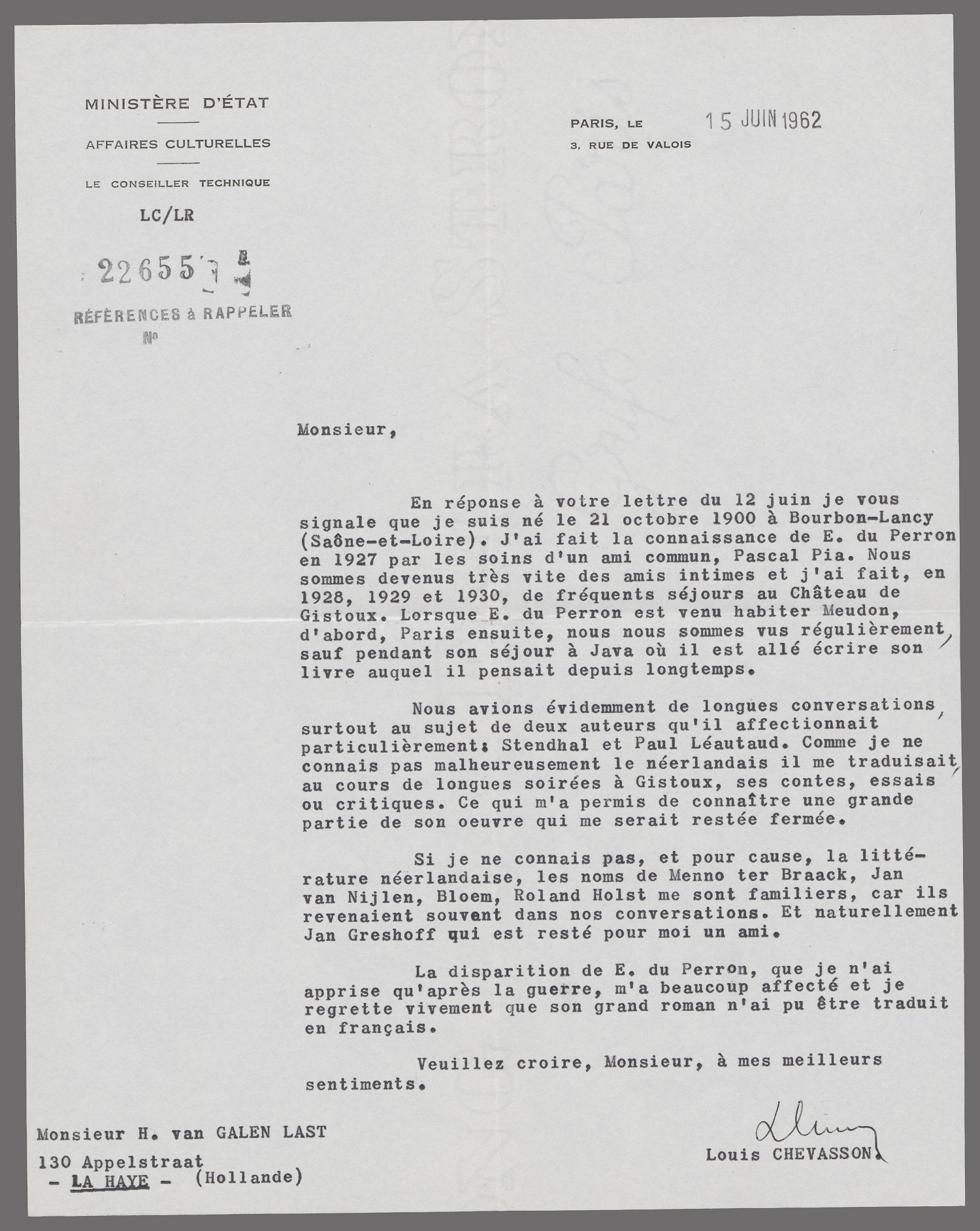 Brieven aan H. van Galen Last voor Briefwisseling Ter Braak-Du Perron