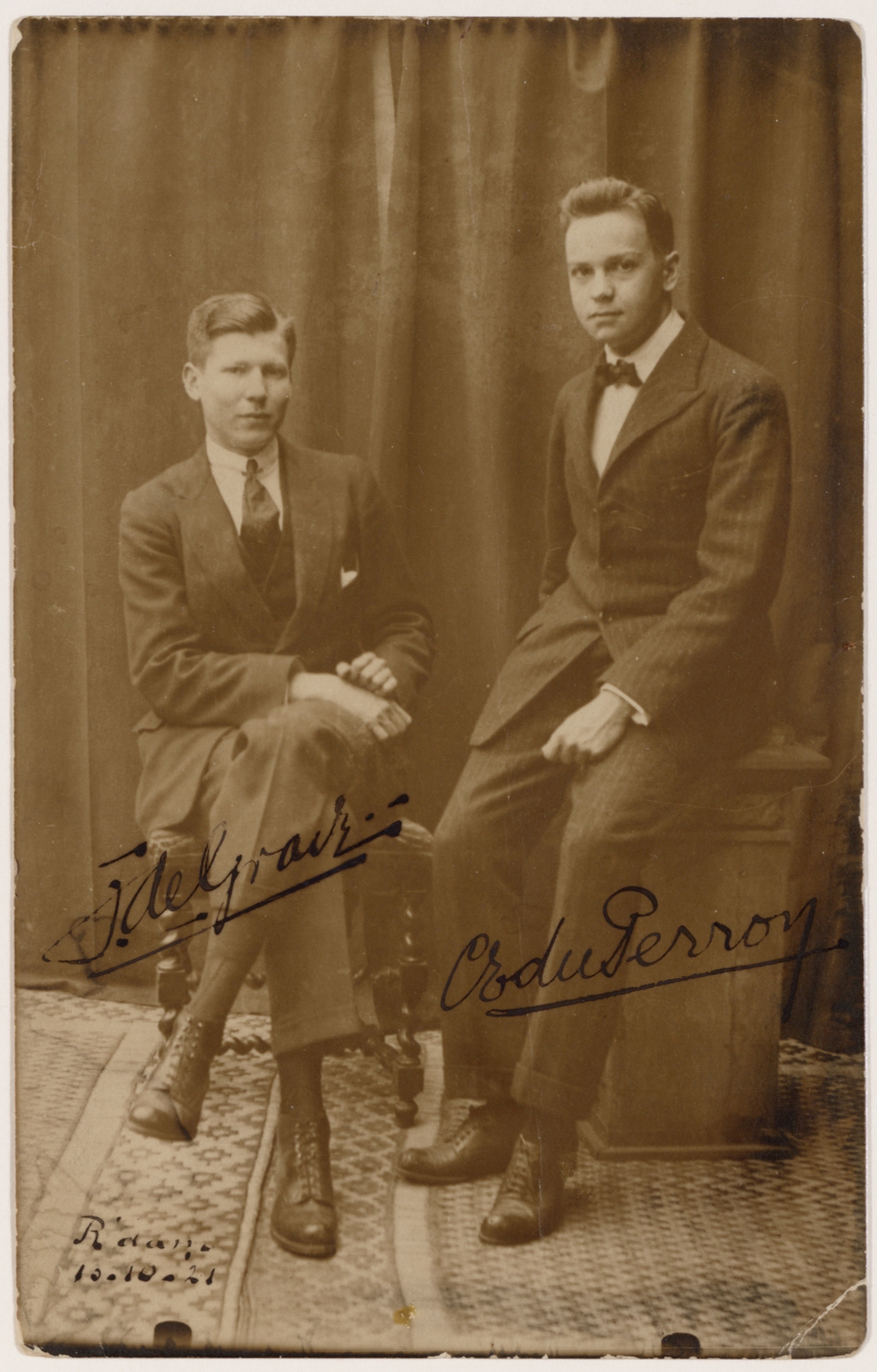 Van links naar rechts: schoolvriend Ferdy de Grave en E. du Perron, 10 oktober 1921 (zie ook album 3, blad 5)