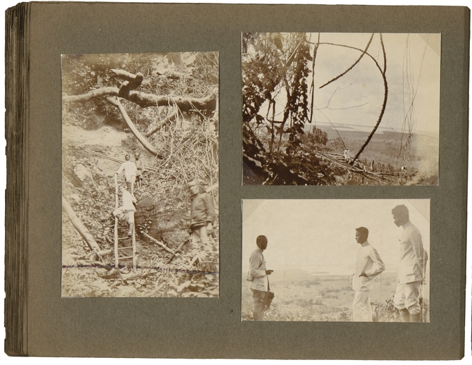 Links: de beklimming van Goenoeng Etteng door Du Perron (op achterzijde: Uitzicht vanuit Goenoeng Ettèng (Tembajangan-Kangean))