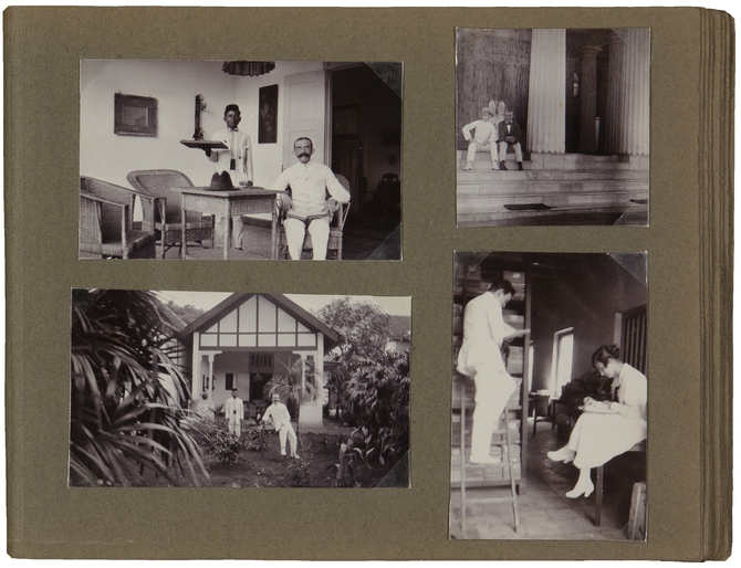![]() Linksboven: Pieter Gediking met een bediende Linksonder: Pieter Gediking en een bediende (op achterzijde: Mei ’21) Rechtsboven: E. du Perron en een onbekende, voor het Museum van het Bataviaasch Genootschap (thans: Museum Nasional, Jalan Medan Merdeka Barat, no. 12, Jakarta Rechtsonder: E. du Perron en onbekende dame, Bataviaasch Genootschap |