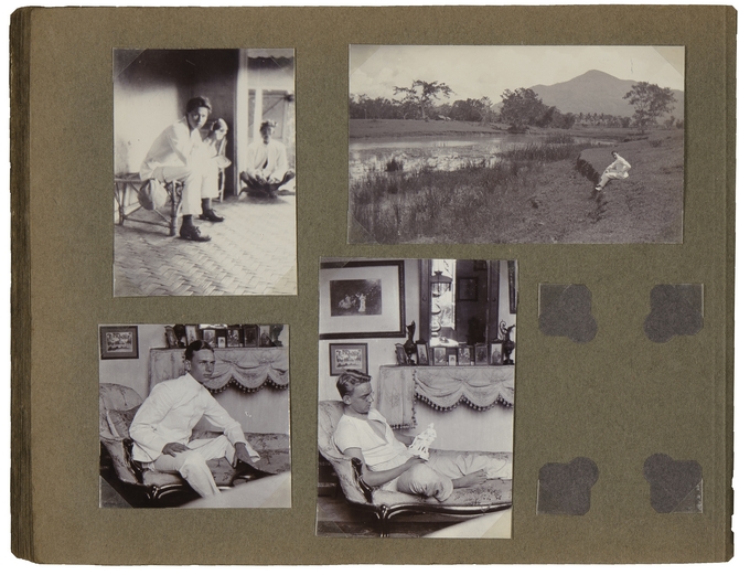 Linksboven: Phely Jordaan (?) drinkend uit kokosnoot (op achterzijde: Haoer Poegoer Maart ’21)