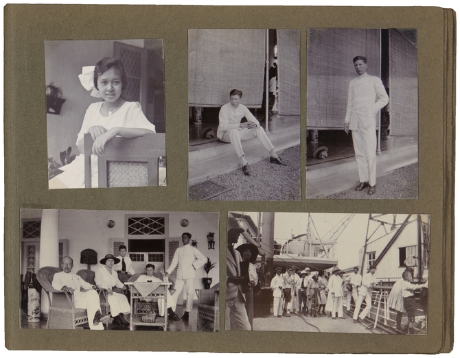 ![]() Midden en rechtsboven: Ferdy de Grave Linksonder: Ferdy de Grave (achter de tafel) met zijn ouders Theodorus Justus de Grave en Charlotte Mientje Wollrabe (op achterzijde: Petodjo 3 Juli ’21) (Petodjo is een wijk van Batavia, in de buurt van het Molenvliet) Rechtsonder: (op achterzijde: S.S. Patria) |