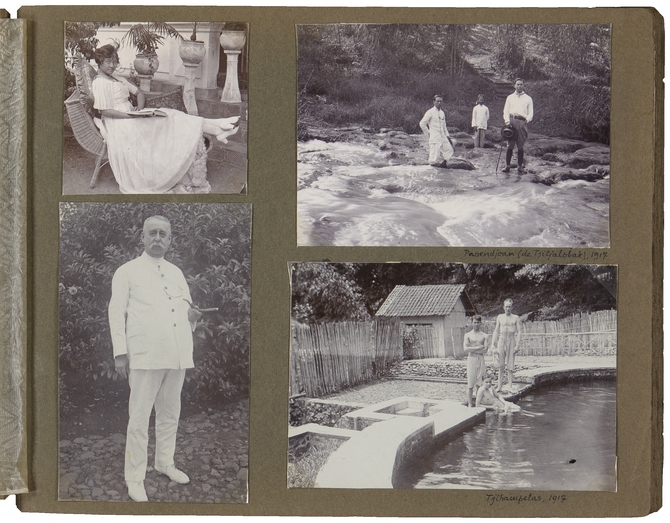 Rechtsboven: waterval met twee Indische jongens en een bediende
