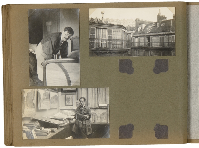 ![]() Eerste verkenning Montmartre: 12 maart – eind maart 1922 Rechtsboven: uitzicht vanuit Hôtel Printania, vijfde etage, hoekkamer met balkon, 11 rue Burq (thans Hôtel Bonséjour) (op achterzijde: Uitzicht Hotel Burq) Linksonder: (op achterzijde: Gabriel Daudier – rue du Mt Cenis) |