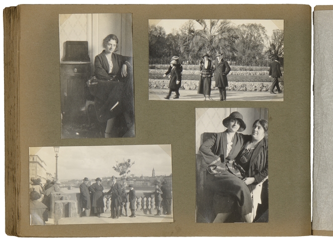 ![]() Linksboven: Clairette Petrucci Rechtsboven: E. du Perron en Clairette Petrucci in het park Cascine te Florence (op achterzijde: Cascine, April ’22) Linksonder: E. du Perron in Florence, met Clairettes moeder Claire Petrucci-Verwee en haar voogd Rechtsonder: Clairette Petrucci en haar moeder |