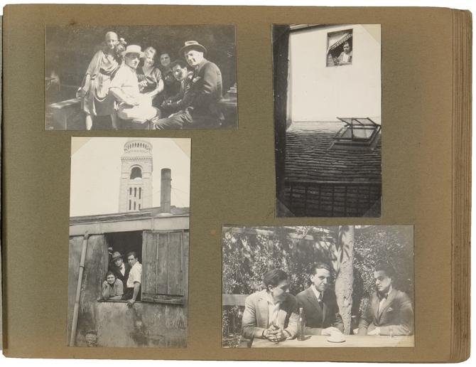 ![]() Linksboven: vriendengroepje Montmartre met Paul Jeffay en Pedro Creixams Rechtsboven: Pedro Creixams Linksonder: v.l.n.r. Madeleine Creixams, E. du Perron, Pedro Creixams in de kamer van Creixams, achter de Sacré-Coeur, 57, rue Chevalier de la Barre Rechtsonder: v.l.n.r. Pedro Creixams, Pascal Pia, Georges Gabory (op achterzijde: Juni ’22). |