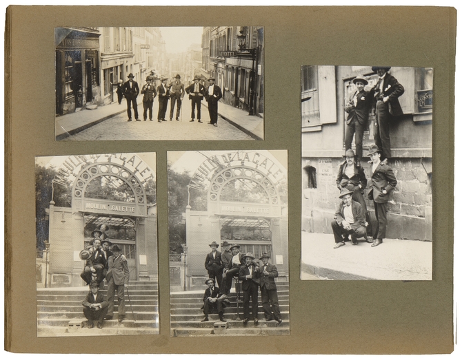 ![]() Boven: rue Tholozé, Montmartre. V.l.n.r. Oscar Duboux, Stanley Nuttall (vmdl.), Paul Jeffay, Gen Paul, Tin Florias, Pedro Creixams Rechts: links van boven: Jeffay, Duboux, rechts Florias, Du Perron (op achterzijde: Derde phase van den volkerenbond – oftewel de reclame-borden in gevaar. Schotland en Griekenland in top, Spanje op de knieën, Engeland achter het toestel gebannen!/ Dit is “la jeunesse studieuse”) Links onder: van boven: Duboux, Florias, Jeffay, Creixams, Paul, Du Perron |