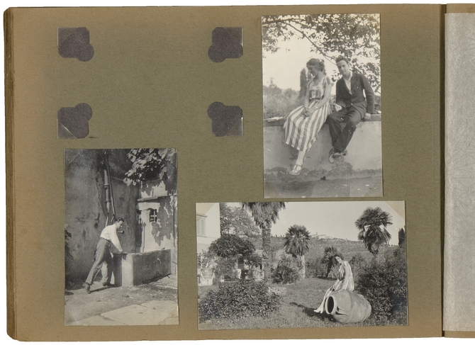 Boven: Clairette Petrucci en E. du Perron op het terras van Villa de Pazzi