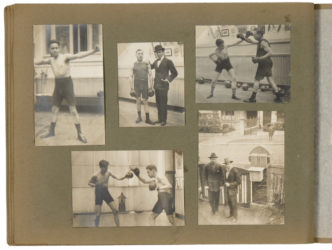 E. du Perron op zijn boksschool in Brussel