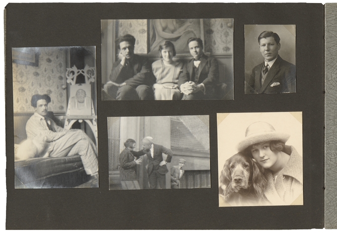 Midden onder: toneelstukje met v.l.n.r. Madeleine Creixams (waarschijnlijk), Oscar Duboux, E. du Perron