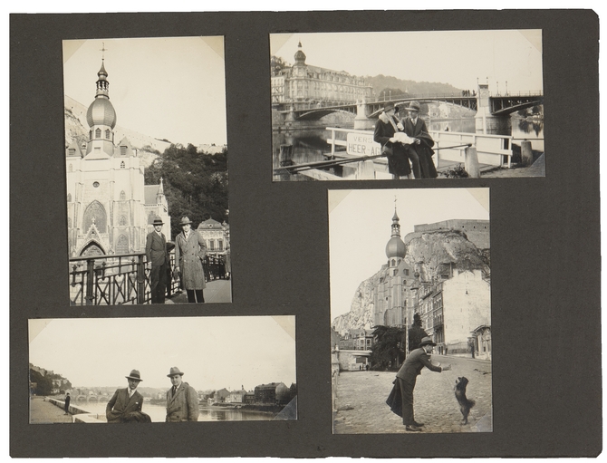 ![]() Bij de citadel van Dinant, oktober 1928 Linksboven: Louis Chevasson en E. du Perron (op achterzijde: Dinant, Oct. ’28) Rechtsboven: Simone Sechez en Louis Chevasson (op achterzijde: Dinant, Oct. ’28) Linksonder: Louis Chevasson en E. du Perron Rechtsonder: E. du Perron |