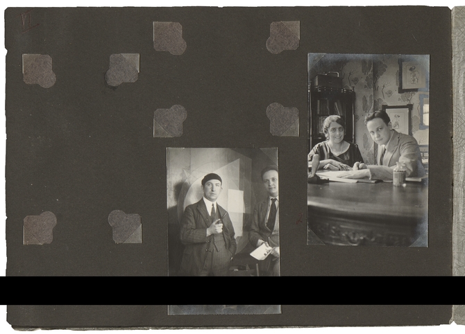 Links: E. du Perron en Jozef Peeters in het atelier van de laatste, De Gerlache kaai 8, Antwerpen