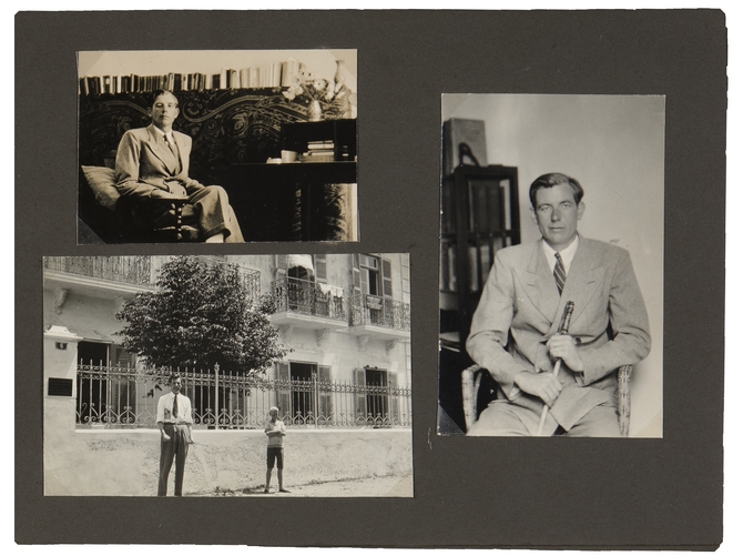 ![]() 22 augustus – 10 september 1934: E. du Perron en Elisabeth de Roos logeren bij J. Slauerhoff in Tanger De foto rechts, van J. Slauerhoff, is in juli 1934 aan Du Perron toegezonden (op achterzijde in handschrift Slauerhoff: ‘Voor Bep en Eddy du Perron/ Dit nieuw portred/ uit t land der zon/ Waar Moor en ber-/ ber hun verwacht:/ paar dat naar ster-/ ke eenheid tracht’ Adriaan Roland Holst heeft daarbij geschreven: ‘En in hart’s er-/ ker vindt zijn kracht.’) |