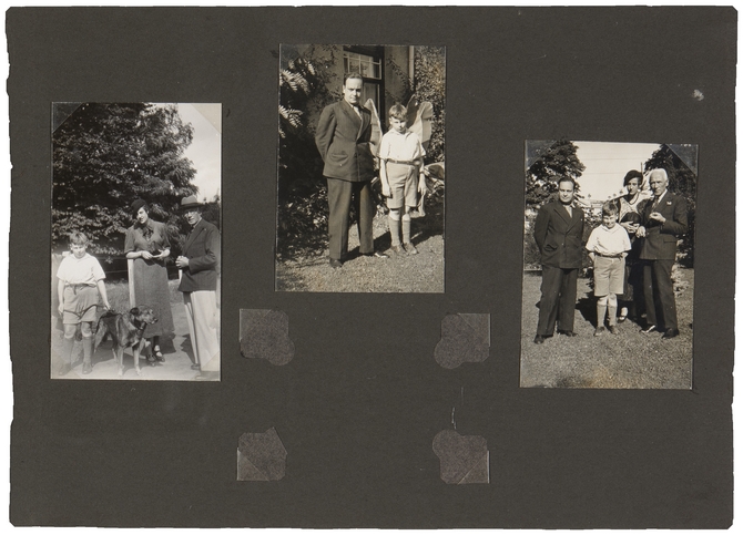 Rechts : v.l.n.r. E. du Perron, Gille, Elisabeth de Roos, dokter Maasland