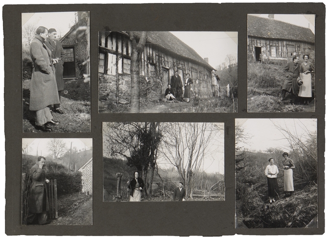 ![]() Bij het landhuis Sept Pommiers van Frans koloniaal ambtenaar Bernard Bourotte en Andrée Bourotte-Leblond, nabij Lisieux, Basse-Normandie. Linksboven: André Malraux en Bernard Bourotte Linksonder : André Malraux Midden boven : Elisabeth de Roos (links), Bernard en Andrée Bourotte (op achterzijde: 12 Maart ’36) Midden onder: Elisabeth de Roos (links) Rechtsboven: E. du Perron en Elisabeth de Roos Rechtsonder: Elisabeth de Roos met Andrée Bourotte |
