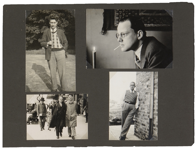 ![]() Linksboven: Hendrik Marsman Rechtsboven: Menno ter Braak (op achterzijde in het handschrift van Ter Braak: Bijgaand beeld vervaardigd door Tine. De kaars wordt er voor publieke doeleinden afgeknipt, maar ik wil hier het mystische deel niet van het intellectualistische scheiden!) Linksonder: Jan Greshoff en Hendrik Marsman Rechtsonder: Simon Vestdijk |