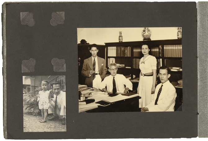 ![]() Linksonder: Soegondo Djojopoespito met zijn zoontje Rechts: Uitgeverij Nix te Bandoeng. V.l.n.r. Maurits Frederik Nix (zoon van K.E. Nix, werkzaam op de drukkerij, na de oorlog nog directeur geweest), Karel Eduard Nix (oprichter van de drukkerij ‘v/h A.C. Nix & Co’), juffrouw Poppie Bieger (secretaresse), Willem Jacobus Nix (jongere broer van K.E. Nix). [Informatie van dr. Ir. Thomas Nix, d.d. 25-8-1993] |