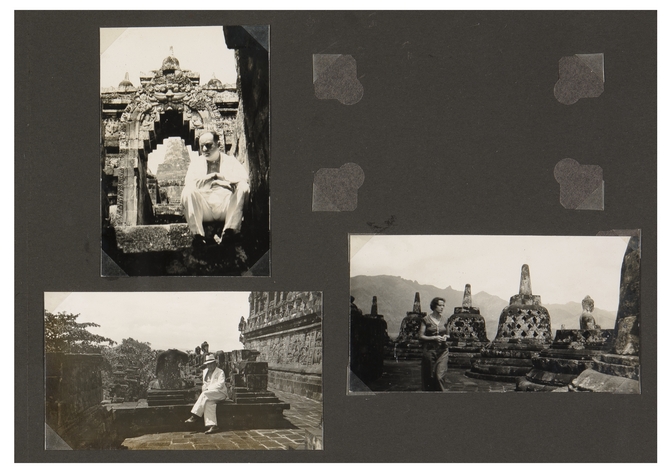 E. du Perron en Elisabeth de Roos op de boeddhistische tempel Boroboedoer, Midden-Java, 7 mei 1937