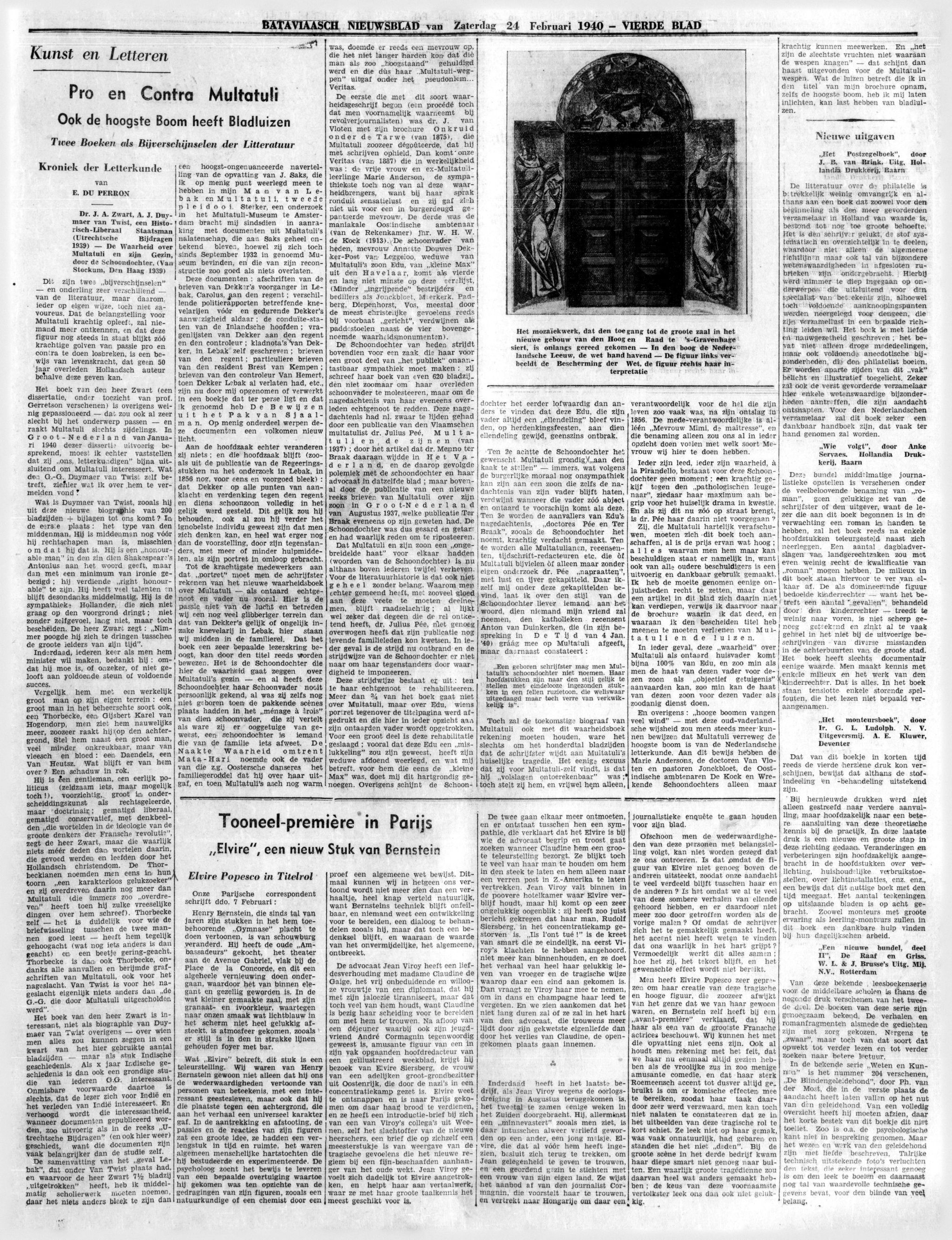 Pro en contra Multatuli (Dr J. Zwart: A.J. Duymaer van Twist; De Waarheid over Multatuli en zijn gezin door de Schoondochter) LV
