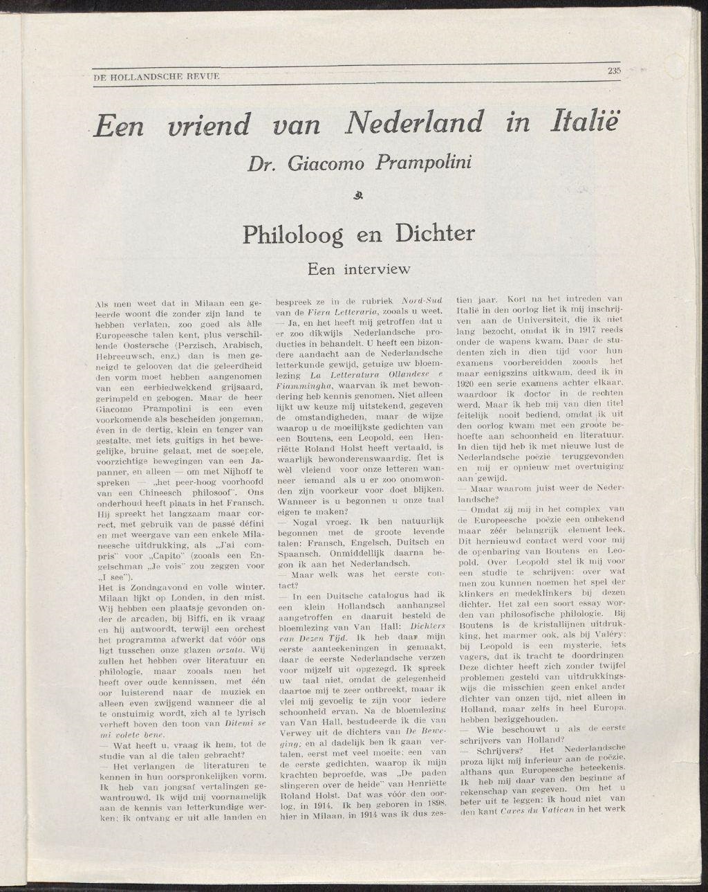 Dr Giacomo Prampolini. Een vriend van Nederland in Italië. Een interview en drie vertaalde gedichten