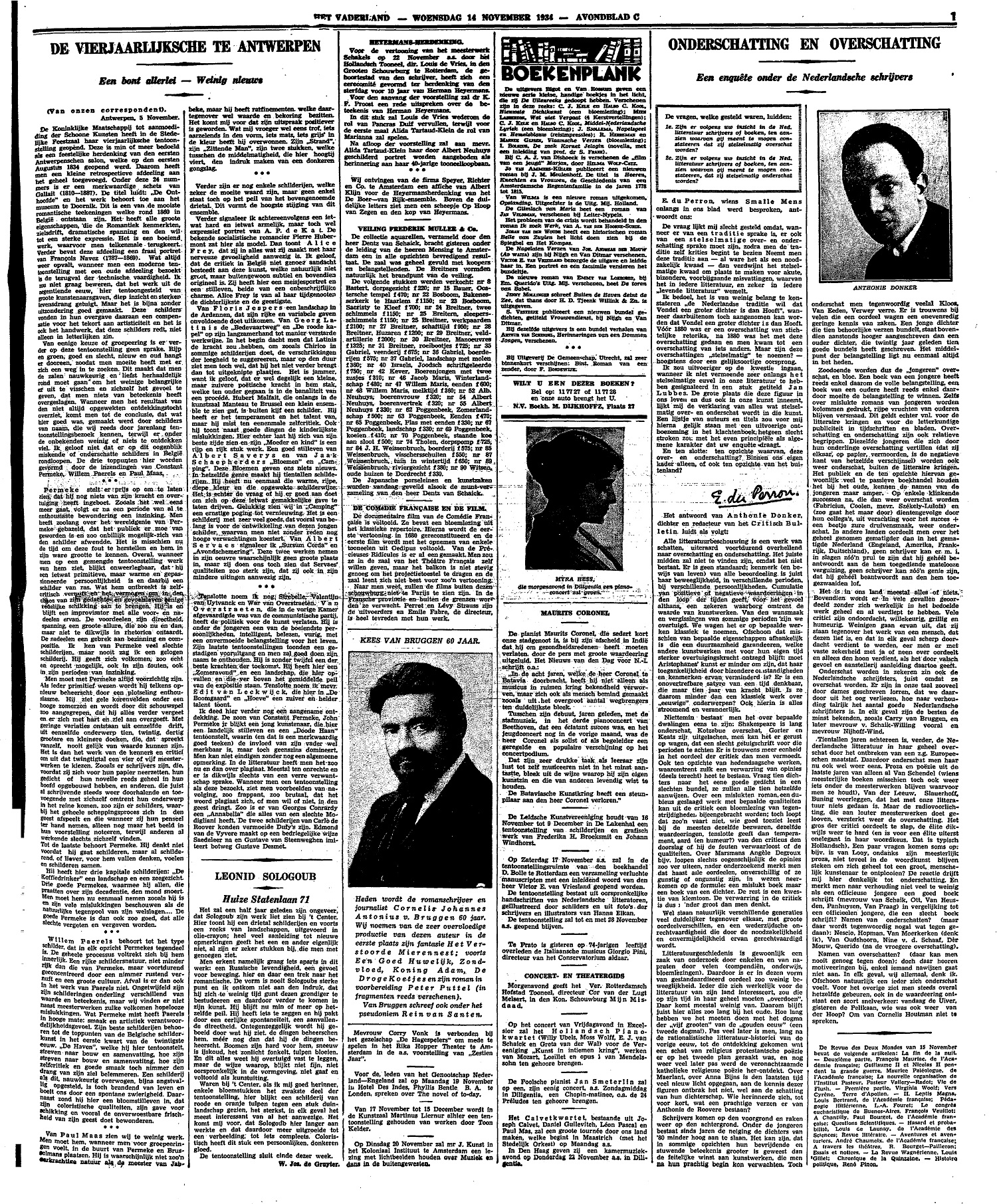 ‘Onderschatting en Overschatting’. [Antwoord op een litteraire enquête] LXVI