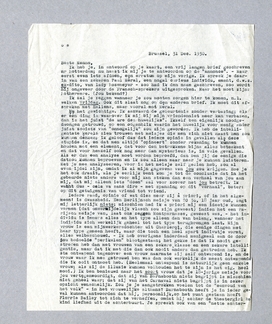 Iedere raad, opinie of wat dies meer zij à priori, of in het algemeen! is dwaasheid. Een Berlijnsch meisje van SO 36, 18 jaar oud, zegt mij letterlijk niets; misschien had ik a priori mij een ideetje kunnen vormen (dat onvermijdelijk valsch zou zijn geweest) indien het een Parijsch meisje van, laat ons zeggen Montparnasse, geweest was, - het individu is immers alles en het type alleen dan van belang, wanneer het individu zich werkelijk geheel tot het type terugbrengen laat. Mijn vrouw is een mijnwerkersdochter uit Charleroi, die eenige dingen met haar type gemeen heeft, maar die toch een héél apart indivutje vormt, alles welbeschouwd. - Ik heb overigens inderdaad menigmaal aan de door jou bedoelde ‘perikelen’ blootgestaan; het gekke is dat ik nooit gestreden heb dan met vrouwen van een zekere klasse en een zekere intelligentie, maar dat ik met die dan ook nooit ànders dan gestreden heb. Ik sta ontwapend tegenover een vrouw naarmate zij zelf ontwapend is, en de vrouw waar ik mee getrouwd ben was dan ook werkelijk de meest ontwapende die ik ooit ontmoet heb. (Heelemaal ontwapend is natuurlijk geen enkele vrouw; als zij de illuzie kunnen volhouden het te zijn is het eig. heel mooi.) Ik ben benieuwd naar het soort vrouw dat je 18-jarige meisje voor jou vertegenwoordigt, dat zij van Barnabooth niets begrijpt is misschien niet gehéél waar; dat zij van het Carnaval niets begrijpt is in zeker opzicht wenschelijk.