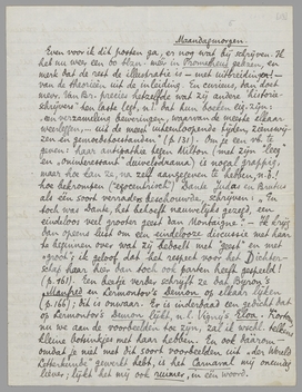 Mondeling dan ook over mijn gedicht in Balans. Laten wij het eens samen bekijken. Maar in hoofdzaak zijn we het alweer eens. Inderdaad, is wat ook mij erin hindert, die Nederlandsch-nobele toon. Het moet de slechte invloed van Holst zijn geweest. - Jammer, want men herschrijft zooiets niet meer, en wat er in zit, gaat mij nogal erg aan...