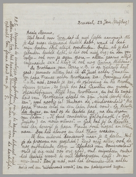 P.P.S. - Nogmaals de enveloppe opengebroken om je te danken ditmaal niet alleen voor Eva, dat daarnet binnenkomt, maar vnl. voor de hartelijke opdracht. Een ferme hand van je