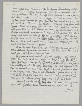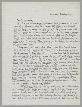 Je proeven met inleiding (zéér aardig!) zijn naar Stols. Ook Stols vond die inleiding bizonder goed, zei hij tegen Greshoff. Zou je bij ‘Jezus: je zus(ter)’... die ‘(ter)’ niet schrappen, die de grap een tikje te veel aandikt. ‘Je zus’ is bovendien juist zoo aardig, vooral omdat je een klein jongetje was toen je die heerlijke regelen las. - Ik zend je de drukproeven van die inleiding, maar kijk voor jou de nieuwe proef hier na, als je dat wilt.
