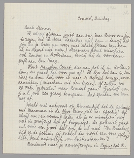 Houd Hampton Court dus aan tot ik in Holland kom; en maak het voor me af! Ik lees het dan in Den Haag en kom het, voor ik naar de Belziek terugga, even aanreiken (misschien uit den trein). Of zullen we 28 Febr. ‘gedrieën’ naar Brussel gaan? Greshoff zou je n.l. ook zoo graag terugzien. Dat spreken we dan nog af.