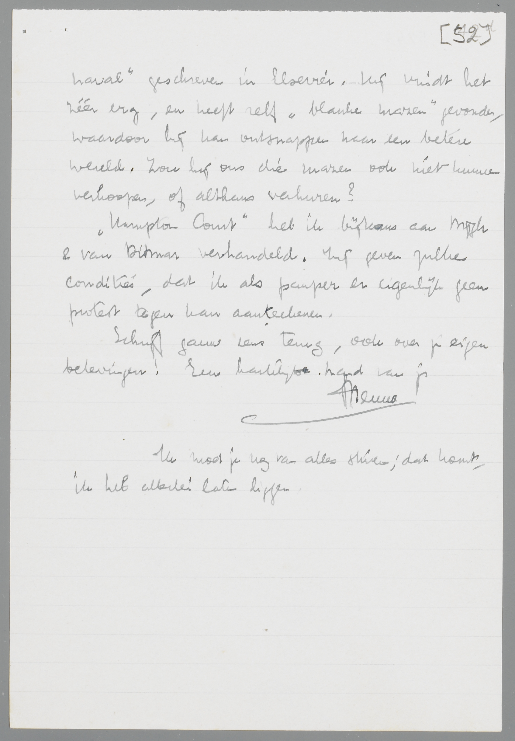 Hampton Court heb ik bijkans aan Nijgh & van Ditmar verhandeld. Zij geven zulke condities, dat ik als pauper er eigenlijk geen protest tegen kan aanteekenen.