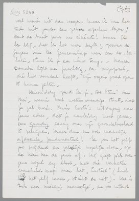 Hartelijk dank voor je beide pakjes en brieven! Voor kleine Parochie ziet er beter uit dan Kort Geding, vind ik, door de letter, en door den inhoud. (dit laatste ziet men ook op het eerste gezicht). Ik las Marsman nog eens over; er staan uitstekende dingen in, maar mij hindert toch altijd dat zich - bruusk - retireeren achter het dichterschap, überhaupt de ‘ik vermoed’-toon, die geen ander fond heeft dan dichterlijke zelfoverschatting. Weshalve dan ook mijn anti-aesthetische aesthetica weer flink gevorderd is. Toch is Marsman een vent, een dichter in den goeden zin van het woord; hij kan soms losse dingen verbazend goed zeggen, werkelijk ‘onthullend’, zooals het in der heeren taal heet.