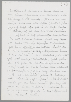 Vanmiddag zond ik je De Stem van Mei, waarin veel wetenswaardigs staat, dat je zal boeien. Primo Coster's uitdaging aan jouw adres, dat je aanleiding moet geven, een grondig essay over zijn grondeloosheid te schrijven. Maar dan nu ook werkelijk afdoende, fundamenteel! Ik zou het zelfs zoo snijdend en zakelijk mogelijk doen, op de kern van de zaak af. Hij geeft zich overigens nogal erg bloot, met die verbeten armeluis-mop over het ‘kasteel’ (had ik het zelf maar, stinkt er uit). Het is toch een mieserig mannetje, en zoo uiterst kwetsbaar bovendien. - Verder staan er weer nieuwe documenten voor Anthonie's aderverkalking in dit nummer, zelfs een zeer duidelijke sneer aan mijn adres (radio!). Enfin, hij krijgt zijn pil in de Vrije Bladen te slikken, zij het dan ook zonder diarrhee.