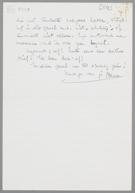 Oef! Ik bezie de V. Bladen-zaak met gematigde interesse. Komt er wat van, dan wil ik actief meedoen, loopt het mis, dan zal ik geen traan storten. Voorloopig verlang ik zwaar naar vacantie! Maar ik wil in ieder geval Bouws niet in de steek laten, voorzoover hij dat niet verdient. Het lijkt me, dat je hem in je laatste brief te zwart beoordeelt; waar ik misschien zelf aanleiding toe gegeven heb, met al zijn ijdelheden (Bs/ce 583 Pr.), die wij tenslotte evengoed hebben, staat hij in dit geval m.i. niet ‘schuldig’, of tenminste niet alleen. Zijn antwoord aan Marsman vind ik ook zeer loyaal.