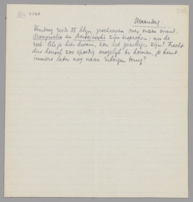 Vandaag reeds 35 blzn. geschreven over onzen vriend. Marginalia en Dostojevski zijn besproken; nu de rest. Als je hier kwam, zou het gezelliger zijn! Tracht dus heusch zoo spoedig mogelijk te komen, je kunt immers later nog naar Eibergen terug?