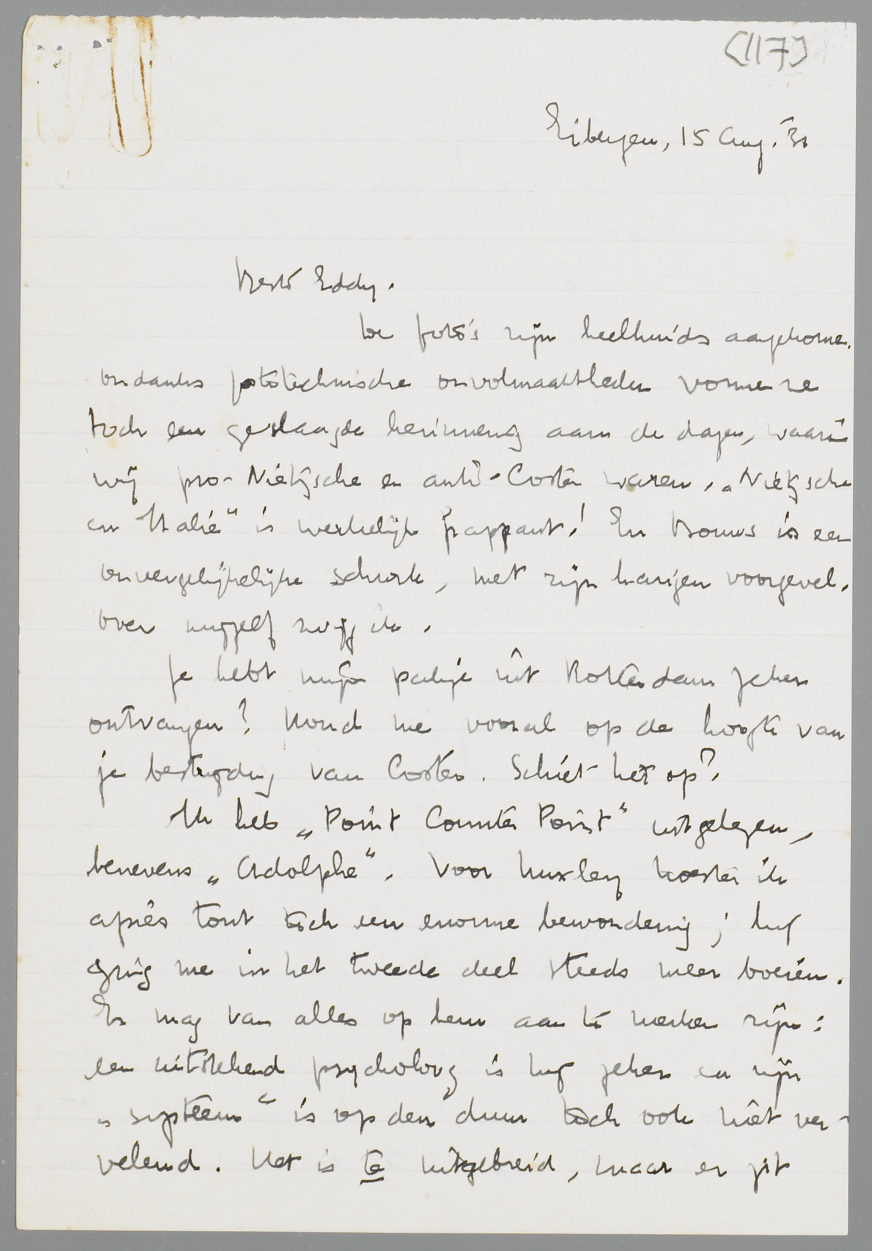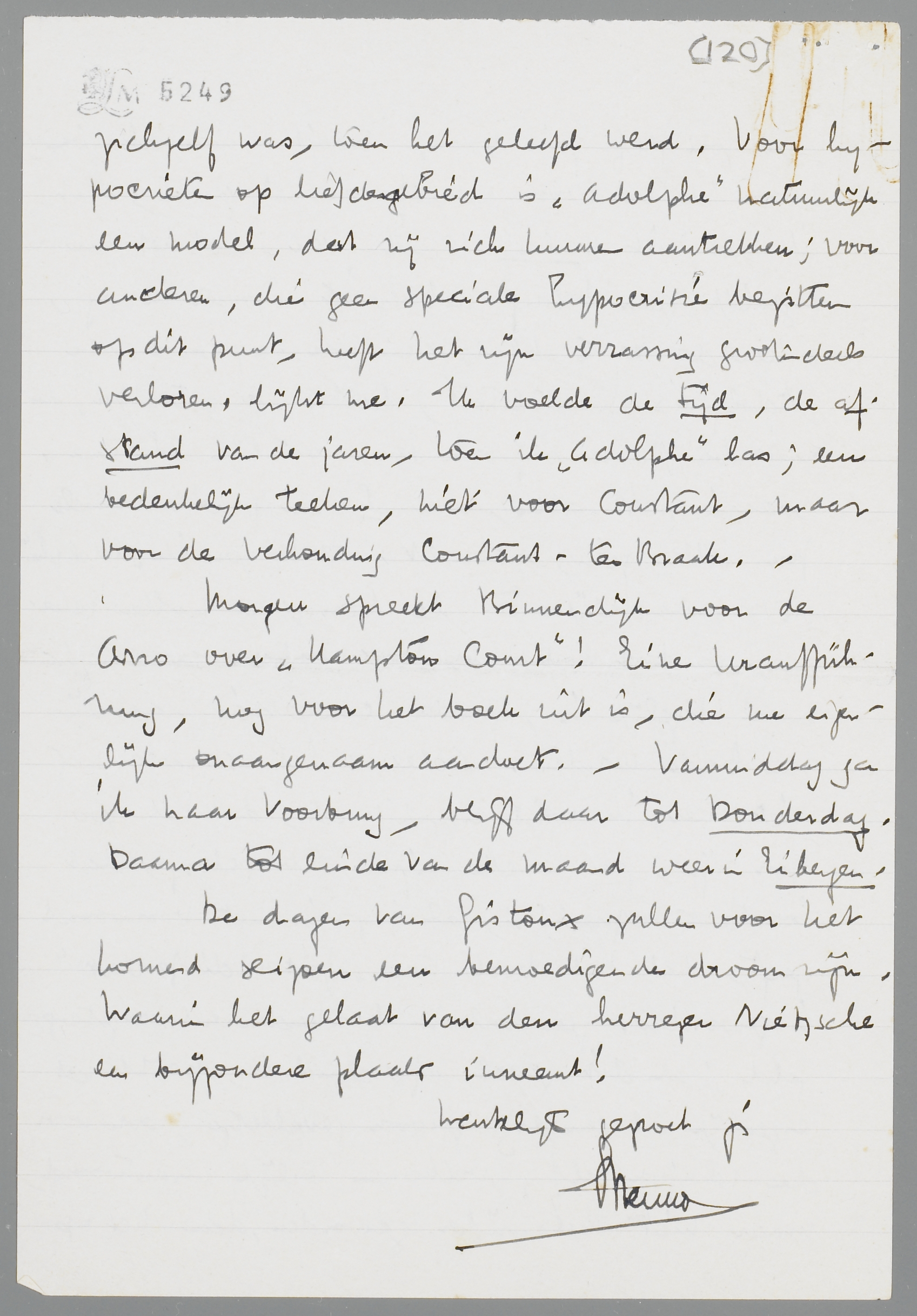 De dagen van Gistoux zullen voor het komend seizoen een bemoedigende droom zijn. Waarin het gelaat van den herrezen Nietzsche een bijzondere plaats inneemt! Hartelijk gegroet je