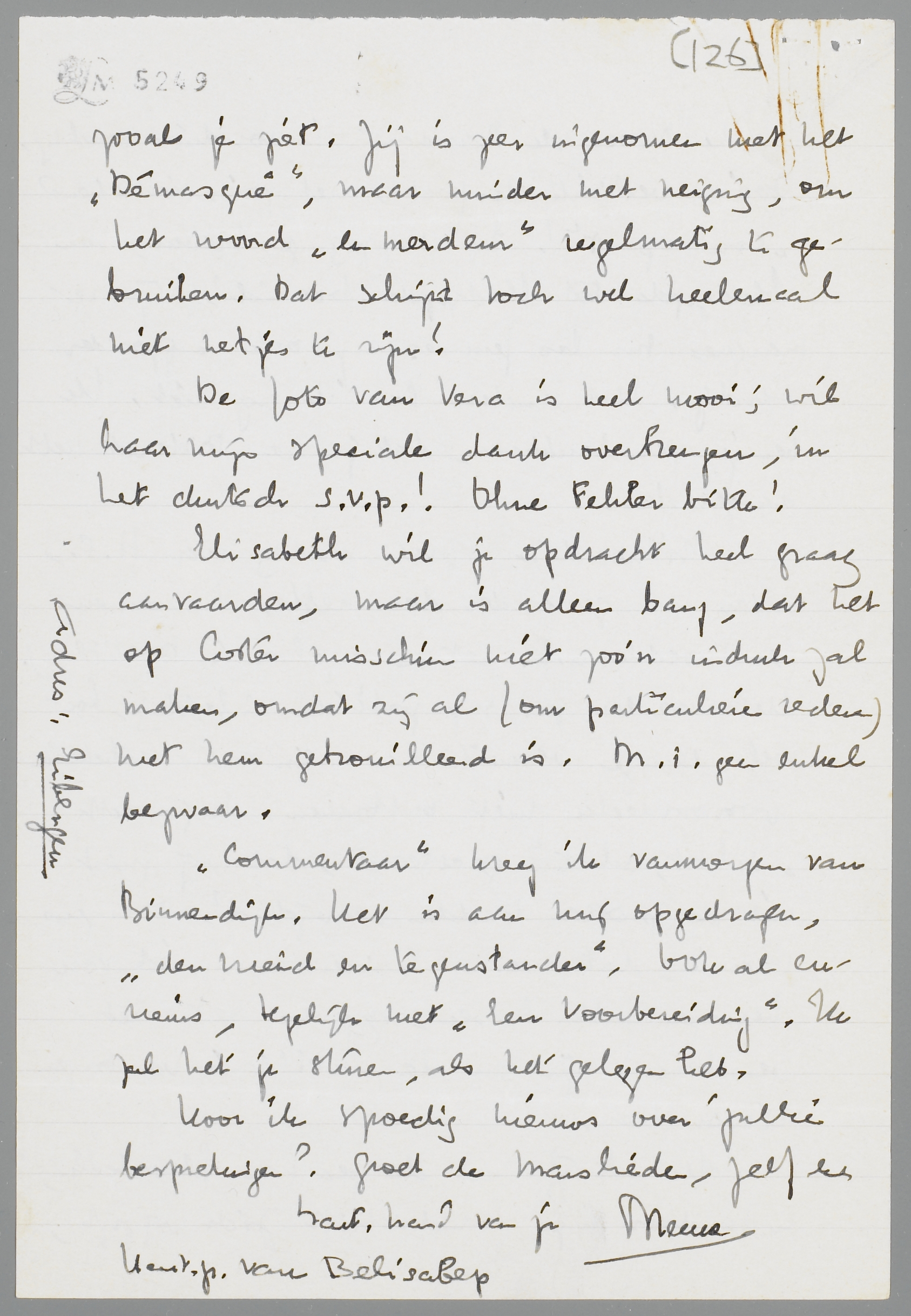 Elisabeth wil je opdracht heel graag aanvaarden, maar is alleen bang, dat het op Coster misschien niet zoo’n indruk zal maken, omdat zij al (om particuliere reden) met hem gebrouilleerd is. M.i. geen enkel bezwaar.