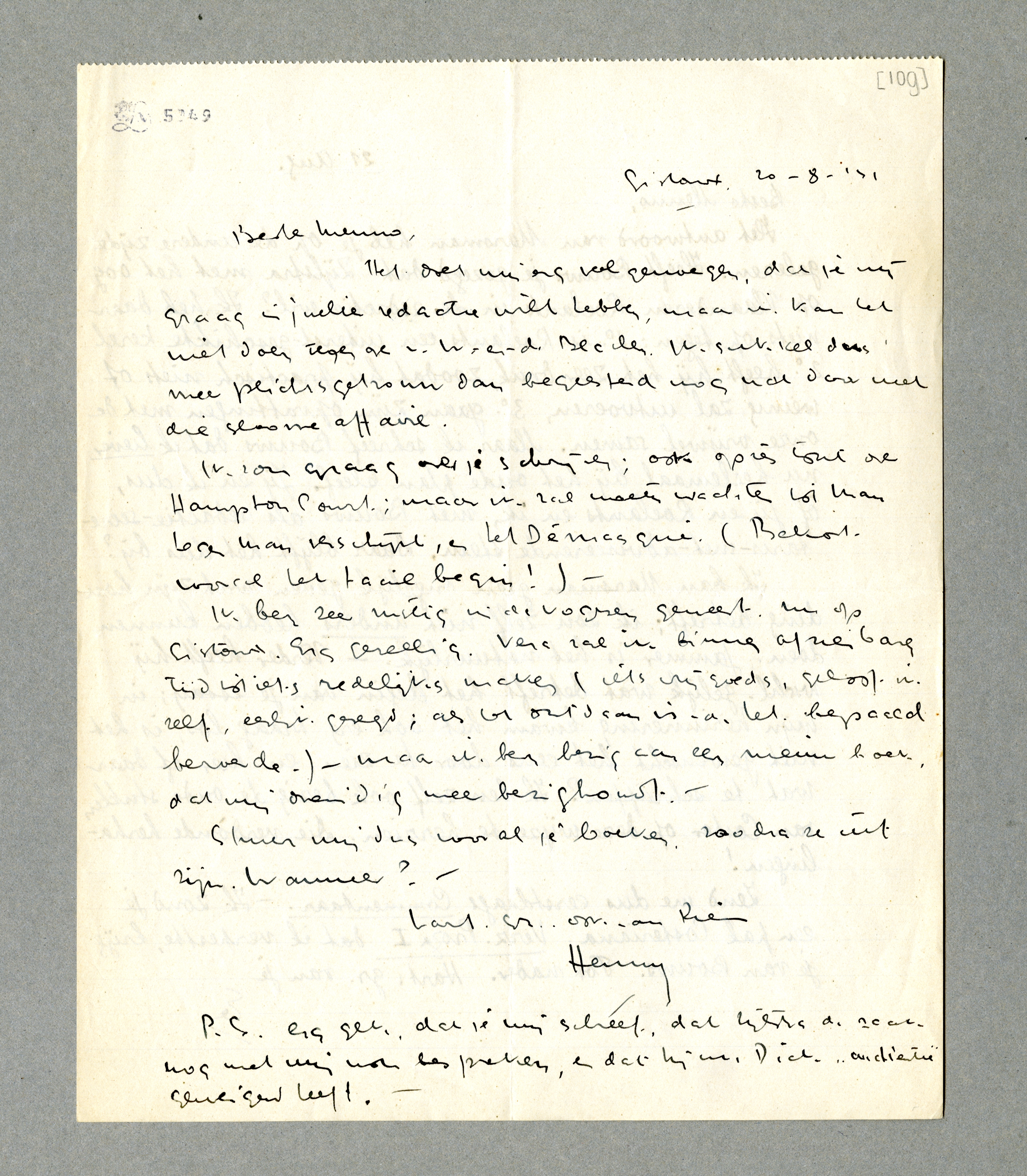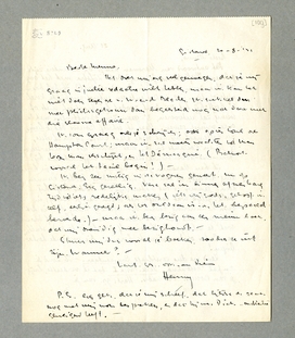 Ik kan Marsman geen ongelijk geven wat zijn houding betreft; ik zou zelf niet anders hebben kunnen doen. Jammer is het natuurlijk. - Verder heeft hij wschl. gelijk wat betreft het begin van je essay; in mijn herinnering kwam het ook erg traag los; is het niet gewenscht het eens door te zien, en hier of daar wat te schrappen? Ik ben zelf ook bezig de oude stukken van Coster op deze wijze te herzien. Die verdòmde herhalingen!