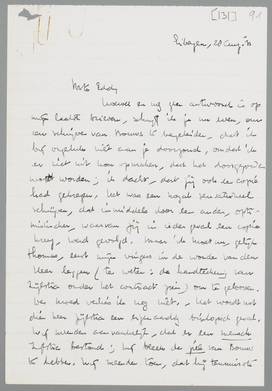 Hoewel er nog geen antwoord is op mijn laatste brieven, schrijf ik je nu even, om een schrijven van Bouws te begeleiden, dat ik bij ongeluk niet aan je doorzond, omdat ik er niet uit kon opmaken, dat het doorgezonden moest worden; ik dacht, dat jij ook de copie had gekregen. Het was een nogal sensationeel schrijven, dat inmiddels door een ander, optimistischer, waarvan jij in ieder geval een copie kreeg, werd gevolgd. Maar ik moet nu, gelijk Thomas, eerst mijn vingers in de wonde van den Heer leggen (te weten: de handteekening van Zijlstra onder het contract zien) om te gelooven. De moed verlies ik nog niet. Het wordt met dien heer Zijlstra een eigenaardig biologisch geval. Wij meenden aanvankelijk, dat er een mensch Zijlstra bestond; hij bleek de ziel van Bouws te hebben. Wij meenden toen, dat hij tenminste een lichaam had, om die ziel te gehoorzamen; dat lichaam blijkt ook niet van hemzelf te zijn, maar van zijn commissarissen! De Zijlstra, die daartusschen eet, drinkt, slaapt, cohabiteert, is hoogstens een figuur in den familiekring; daarbuiten is hij een legende, een symbool, een fantoom. Maar we zullen zien.