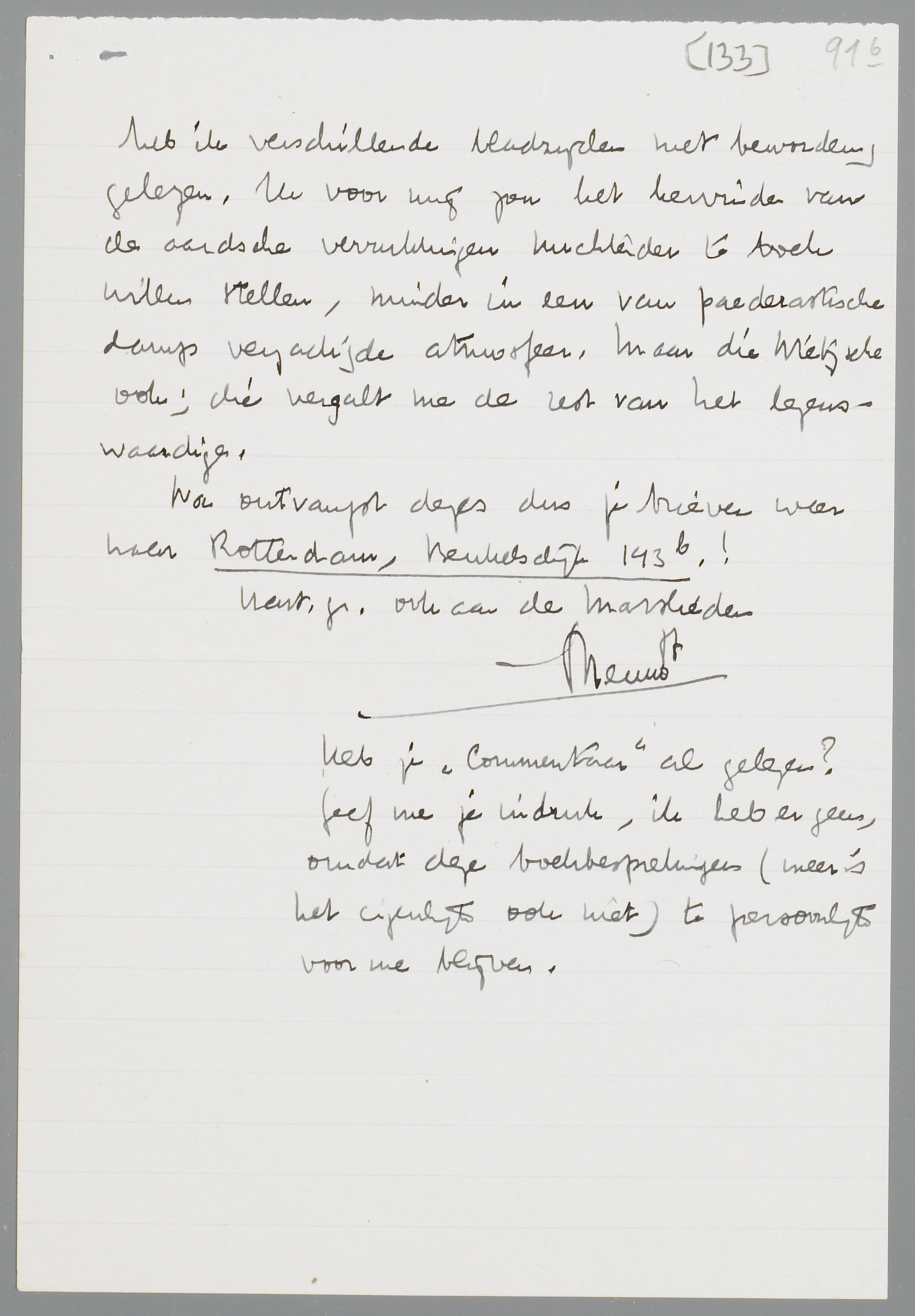 Na ontvangst dezes dus je brieven weer naar Rotterdam, Beukelsdijk 143b!