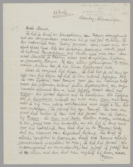 Ik heb je brief en panopticum aan Bouws doorgestuurd met een commentaar waarover hij je wel zal opbellen. Ik ben natuurlijk weer ‘lastig’ geweest. Soit; maar mijn besluit staat vast. Als dat kwatrijn geschrapt wordt, gaat de rubriek Panopticum mij verder niet meer aan. Dan moet Maurice je daarin maar wat krachtiger bijstaan en, zoonoodig, Bouws. Ik kan alleen polemiseeren op mijn manier, anders doe ik het liever heelemaal niet.