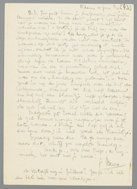 Zoo juist kwam je briefkaart, die jullie terugreis meldde. In de eerste plaats: het beste met je moeder en breng haar mijn hartelijkste wenschen over! - Ontving je de brief nog over de drukproeven-quaestie? Ik hoop, dat je je er in deze omstandigheden verder niets van aantrekt; ik meende, op dit feitje zoo omstandig te moeten ingaan, omdat ik je niets wilde verzwijgen. Als aanvulling binnenkort meer over je polemische stukje tegen de heeren V.C.S.B.-vaatdoeken, waarvan ik de argumenteering geheel deel. Maar dat weet je trouwens wel, het gaat hier meer om de ‘handeling der polemiek’. - Ook zond ik nog een paar knipsels over de Mij der Letterkunde, die mij tot lid heeft benoemd en bij mij een blauwtje heeft geloopen. Moge Slauerhoff tenminste dit voorbeeld volgen; de rest zal wel erg blij zijn met de eer.