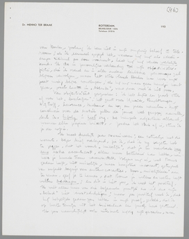Deze quaestie moeten we eens à tête reposée bespreken, omdat het inwisselen van schriftelijke sententies weinig helpt, denk ik. Het komt in laatste instantie neer op een verschil inzake persoonlijk reageeren in de litteratuur. Ik heb je polemiek tegen de V.C.S.B.-ers met pleizier gelezen, maar me tegelijk afgevraagd: is alleen ‘een hollandsch-waardig zwijgen’ het tegendeel van deze manier? Ik geloof van niet. Het is ook niet juist, wat je zegt: dat Donkersloot je niet meer interesseert. Hij interesseert je wel, want anders zou je geen lust hebben over hem te schrijven, of alleen en passant over hem schrijven. Hij interesseert je zoo, dat je hem met Theun zou willen meppen. Volkomen respectabel, en m.i. de eenige consequentie van jouw polemisch temperament. Au fond verschillen wij toch hierin, dat ik alleen interesse voor Donker heb, voorzoover hij een idee representeert, terwijl jij hem persoonlijk te lijf wilt. In de practijk komt het hierop neer, dat jij, telkens als je de antipathieke persoon ontmoet, slaan wilt, terwijl ik, na eenmaal de idee in hem geslagen te hebben, voor mijn gevoel ook met het stoffelijk en stoffig omhulsel van de idee heb afgedaan. Ik vraag me nu af: ben je werkelijk (serieus!) niet verplicht, Anthonie en Theun uit te dagen of af te ranselen, in plaats van dit steekspel met woorden voort te zetten? Het is duidelijk, dat, als je Theun verwijt, dat hij een h in zijn naam heeft (wat ik ook als een fout voel!), het onmiddellijk naastbijzijnde argument is: de vuistslag. Je polemiek betreft ook geen ideeën meer, maar antipathieke lullen en ik vind, dat als je gevoel van walging werkelijk zoo physiek is, slaan de eenig volledig-voldoende reactie is.