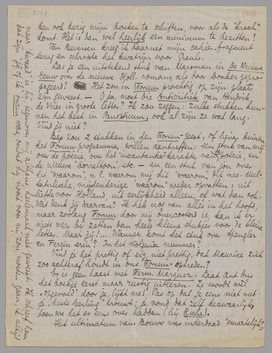 Ik had een heel mooi panoptikumpje in het hoofd over een zekere Achille Rezzonico, een patriot die in Lugano een toren van ijzer heeft gesmeed en dat met eigen commentaar aan iedereen vertoonde (de man was tot een zelfreclame en zelfcultus gekomen, zóó naïef, dat het ‘onthullend’ werd); maar de omstandigheden waarin ik nu weer zit dooden iedere lust tot schrijven, en vooral van zulke dingetjes. Ik scharrel als een idioot (het is niet te sterk uitgedrukt) tusschen het ziekbed van mijn moeder en allerlei verborgen (en dus moeizaam op te diepen) paperassen, en tusschen notarissen, advocaten en assurantie-agenten, dat zelfs Coster medelijden met me zou krijgen! Ik ben ook bezig mijn boeken te schiften, voor als de ‘krach’ komt. Het is dan wel heerlijk een minimum te bezitten!