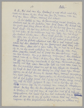 Nu, eens in de week schrijf ik je een brief, ofschoon wij ons voorgenomen hadden voortaan alleen maar briefkaarten te schrijven. Eens in de week 1fr. 50 port = 6 frs in de maand; het màg (voor jou) zelfs wel 7 frs. 50 worden. - Hartelijke groeten, ook van Bep, en aan Ant en Trui(da), van je