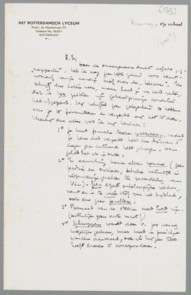 Door de onaangename drukte inzake z.g. ‘rapporten’, heb ik nog geen tijd gehad voor beantwoording van je aardige brief over de Liaisons. Ik schrijf dus later meer, maar laat je nu vast weten, dat ik Vic gisteren zijn geheimzinnige condities heb afgeperst. Hij schijnt geen gelegenheid te hebben om ze te formuleeren en verzocht mij het te doen. Hierbij dus alles wat ik mij herinner:
